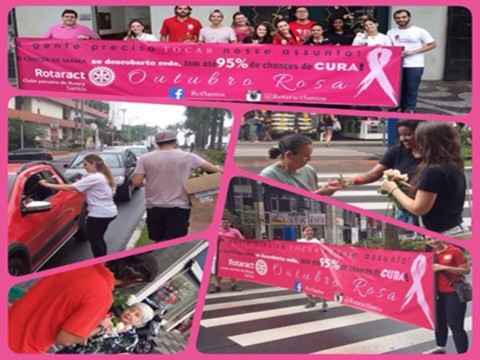 Na manhã do terceiro sábado de outubro, o Rotaract Club de Santos realizou no Gonzaga em Santos, a distribuição de flores juntamente com flyers que informavam sobre a importância da luta na prevenção ao câncer de mama.